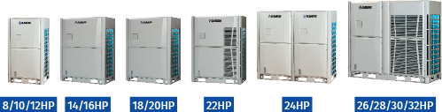 * При об'єднанні 4 зовнішніх блоків потужність одного блока не може перевищувати 24 к.с.
